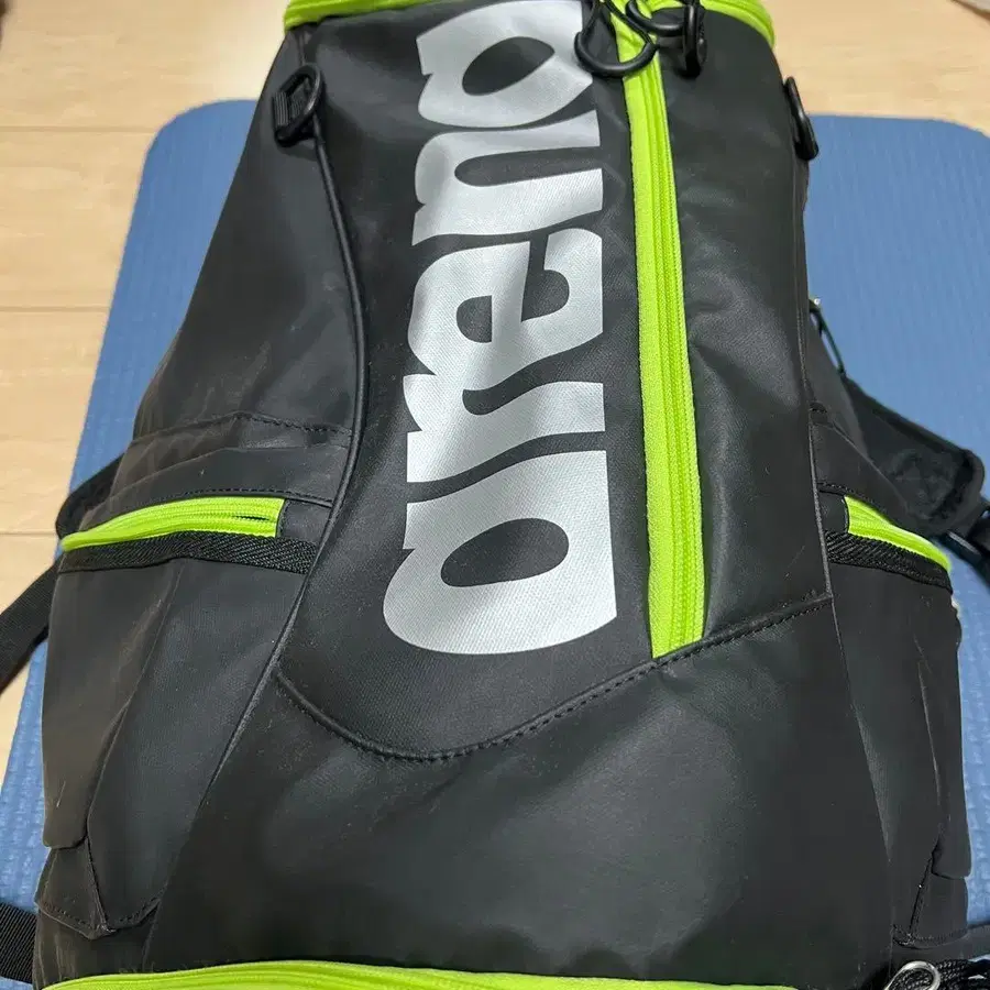 수영 시 사용했던 스윔 백팩입니다. 지퍼의 파손은 없습니다. 미세한 얼룩과 포켓의 상태는 사진과 같습니다. 발송 시에는 접어서 종이상자로 발송됩니다. 블랙과 그린 색상의 arena 백팩, 넓은 수납 공간과 여러 개의 포켓이 있습니다. - 브랜드: arena - 색상: 블랙/그린 - 타입: 백팩 - 포켓 수: 여러 개 - 내부 구조: 넓은 수납 공간 방문해 주셔서 감사합니다.