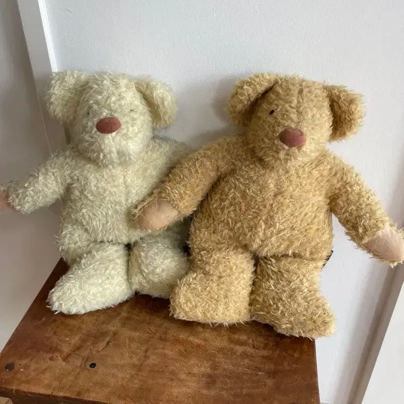 화이트 베이지 곰 봉제 인형 앤티크 레어 기념품 골동품