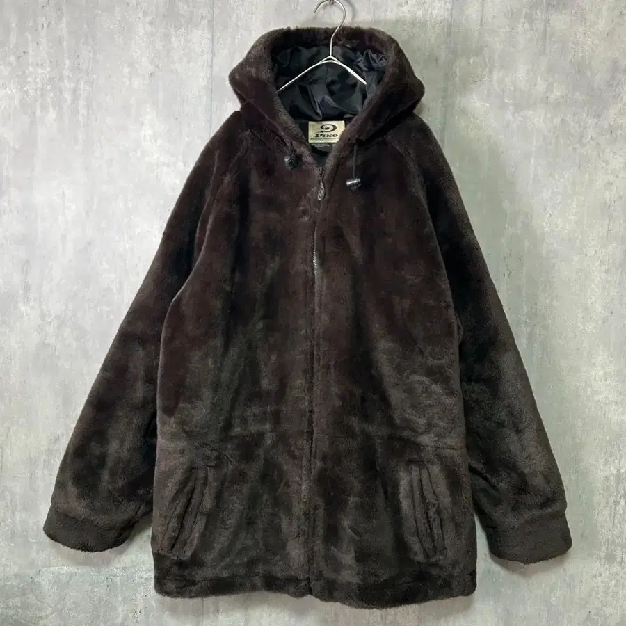 Y2K PIKO 인조 모피 후드티 두꺼운 원단 방한 다크 브라운 그런지