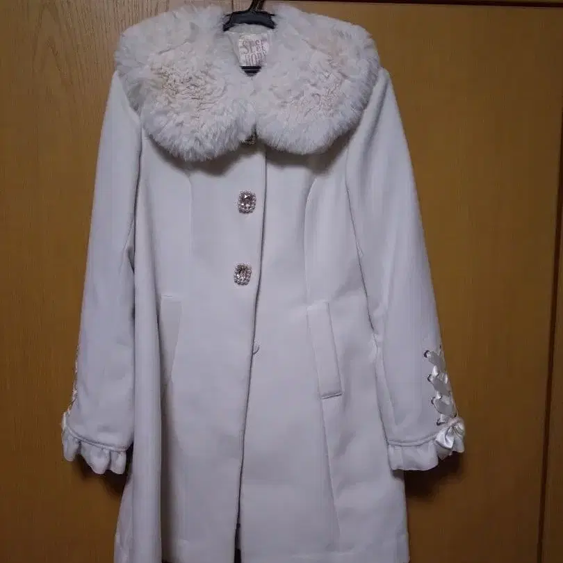 퍼 장식 화이트 롱 코트, 펄 버튼이 특징입니다. - 브랜드: Secret Honey - 색상: 화이트 - 디자인: 퍼 장식 - 버튼 디자인: 펄 장식 버튼 - 스타일: 롱 코트 2년 전에 구매하여 5회 정도 착용 클리닝 완료 18000엔 정도에 딸에게 구매 퍼와 등 부분의 리본은 탈부착 가능합니다.