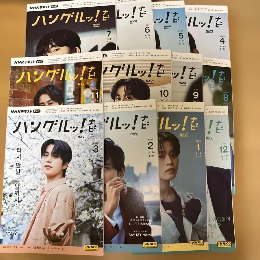 2024년 한글 내비게이션 텍스트 4월~3월까지 12권 모두 있습니다. 조금 펼쳐 보았지만, 필기 등은 하지 않아 거의 새상품급입니다. 키마타 쇼야 JO1 K 김우네
