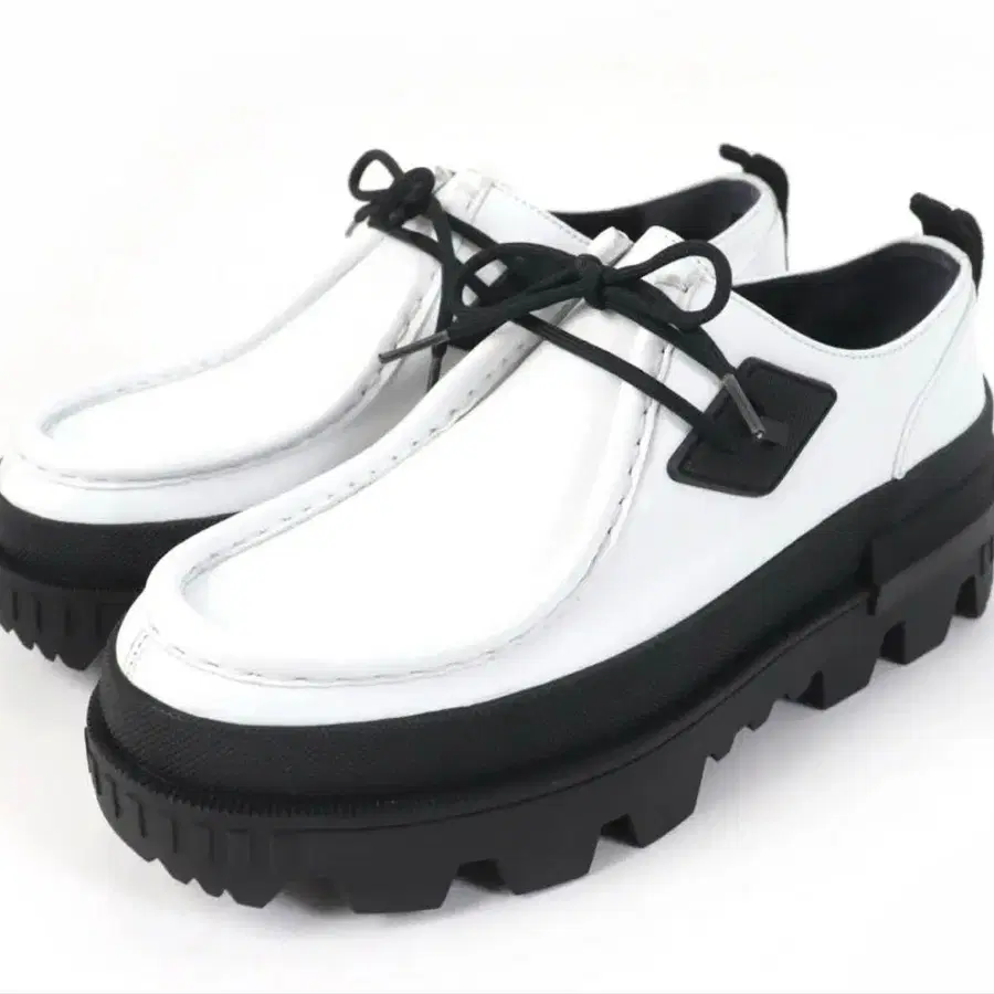 화이트와 블랙의 로퍼 타입 통굽 신발, 가죽 소재. size 23cm MONCLER - 색상: 화이트/블랙 - 디자인: 로퍼 타입 - 밑창: 통굽 밑창 - 소재: 가죽 방문해 주셔서 감사합니다. 몇 회 정도 사용했습니다. 왼쪽 표면 가장자리에 청바지 스크래치 착색이 있습니다.