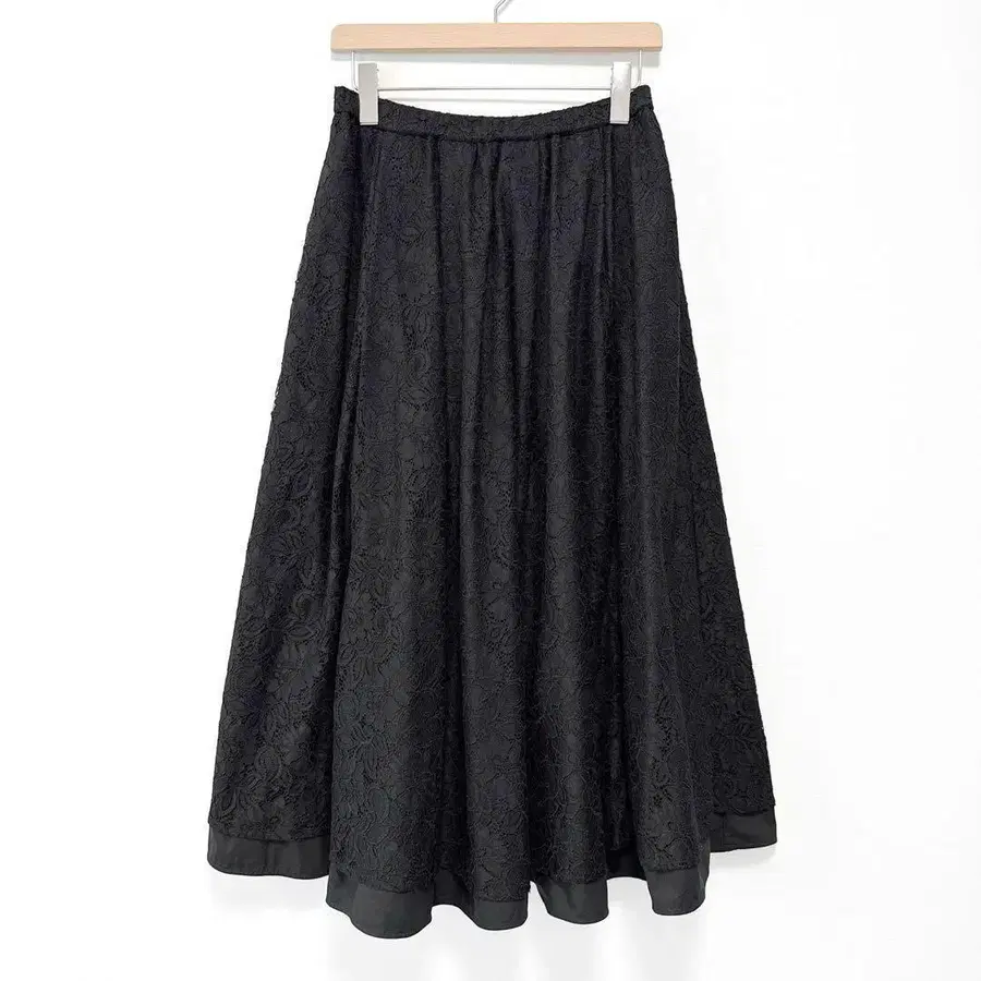 새상품급 Mila Owen 레이스 레이어드 볼륨 플레어 스커트 롱 블랙