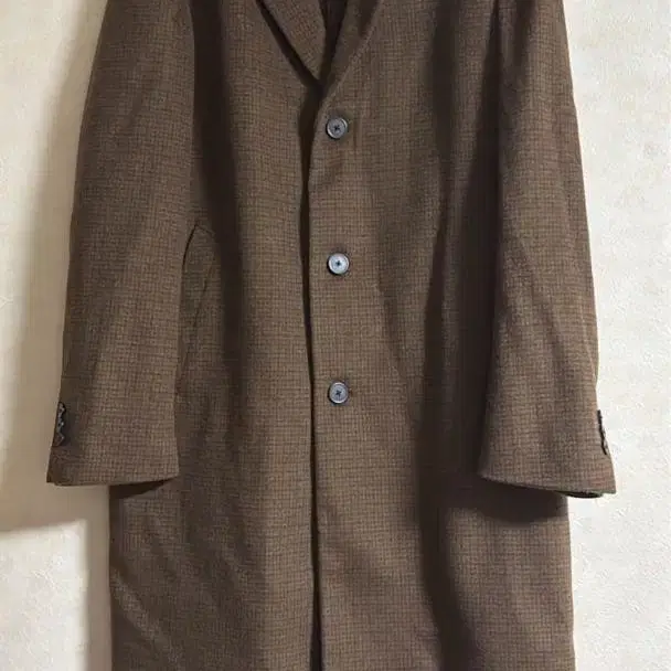택은 없지만 미착용입니다. 브라운에 블랙 체크 무늬 코트입니다. 토르소 마네킹은 여성용 M 사이즈입니다. 사이즈(평평하게 놓음) 가슴 너비 57cm 기장 98cm 소매 길이 62.5cm