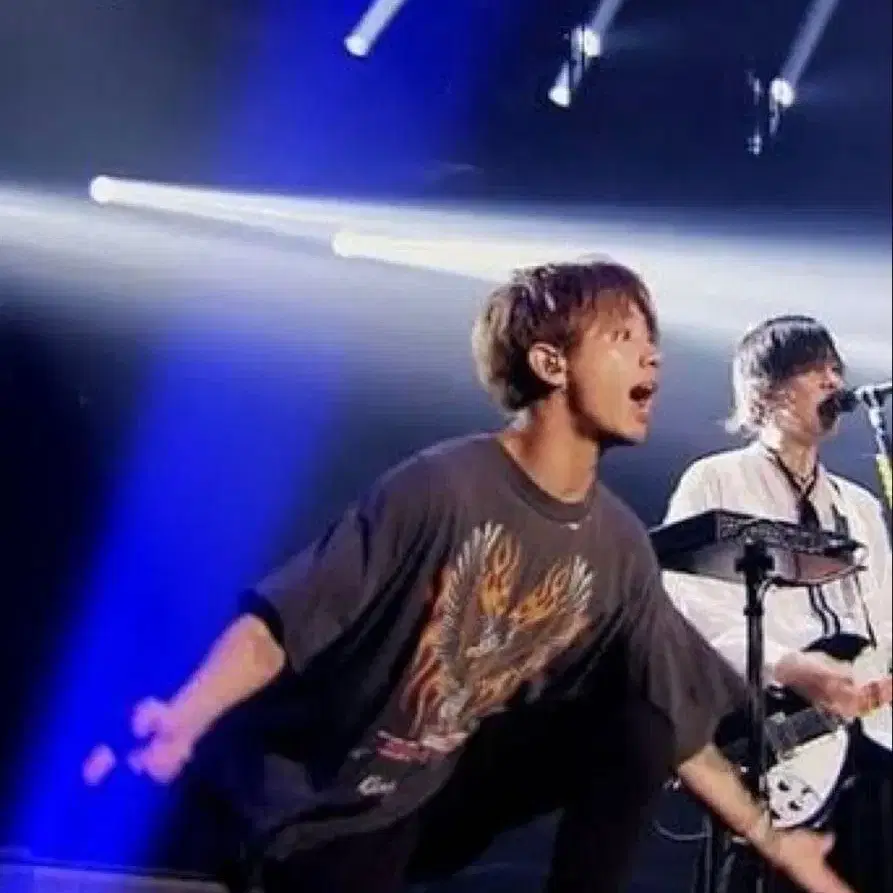 ONE OK ROCK taka 착용 - 디자인: 모터사이클의 독수리와 불꽃 그래픽 - 컬러: 다크 그레이 - 사이즈: 오버 사이즈