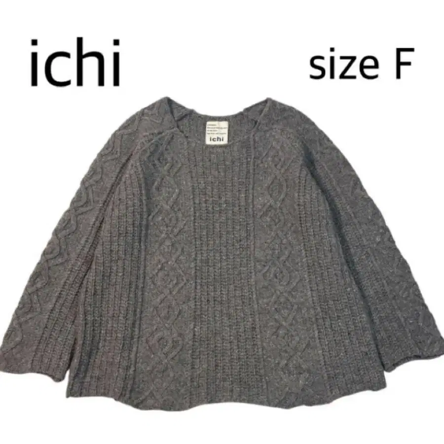 [ size F ] ichi 이치 케이블 짜임 스웨터 울 100% 그레이