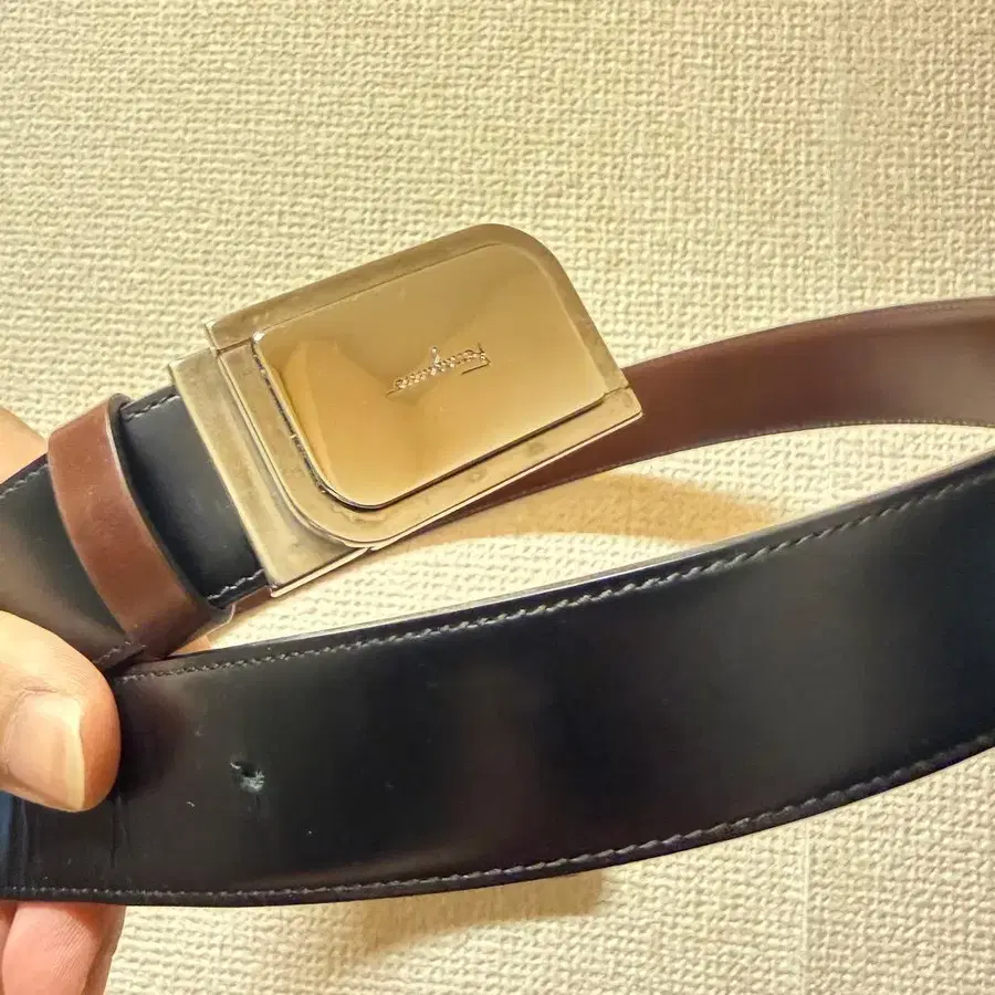 • Ferragamo 가죽 블랙 안쪽 브라운 벨트 골드 버클