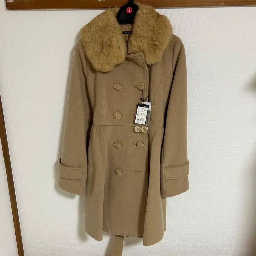 [ INGNI ] 미사용 새상품 버튼 달린 퍼 코트 M 카멜
