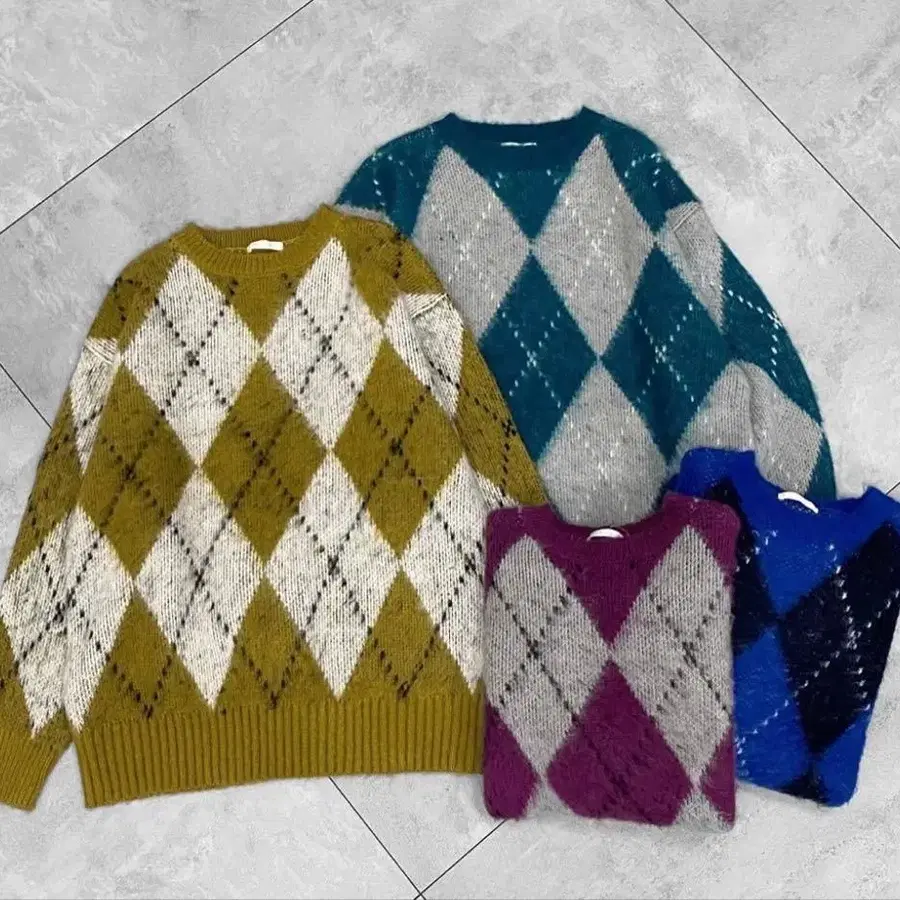 대담한 아가일 무늬가 눈길을 끄는 니트.