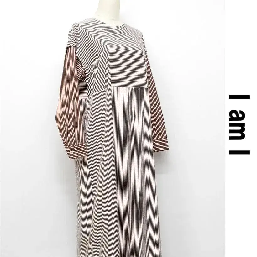 W197/새상품급 I am I IN FACT 레이어드 셔츠 원피스 홍차