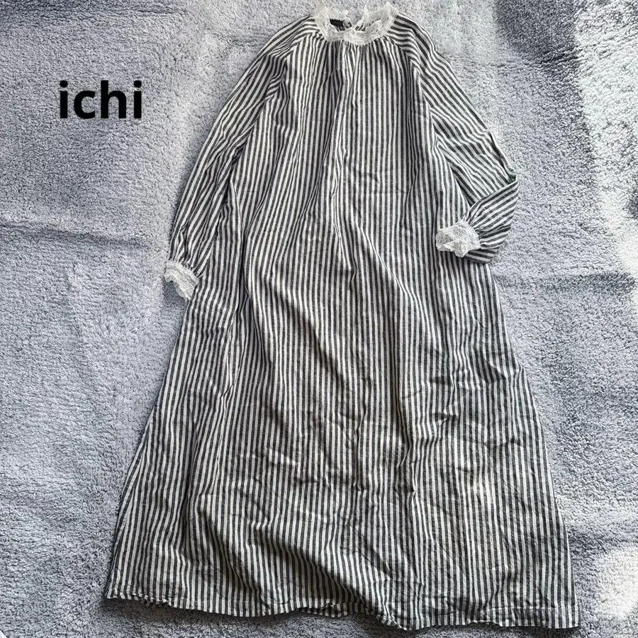 이치 롱 원피스 코튼 린넨 스트라이프 레이스