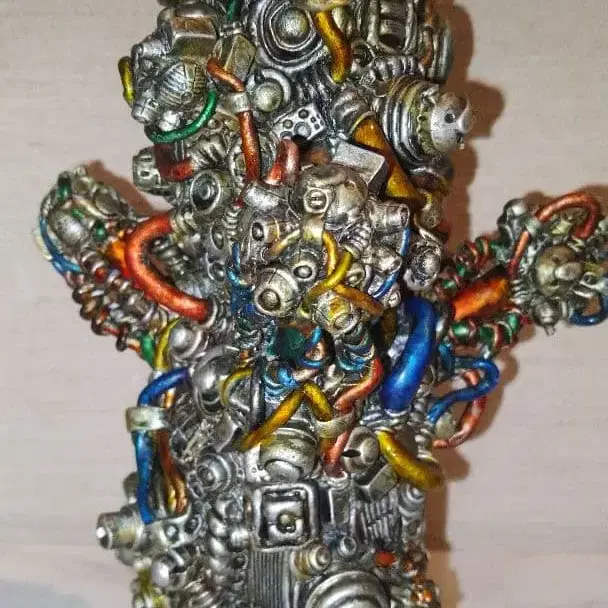 스팀펑크풍의 복잡한 조형이 특징인 오브제