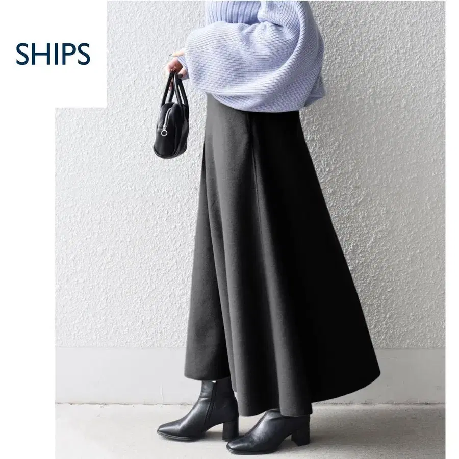 쉽스 SHIPS 롱 스커트 플레어 스커트 가을/겨울 일본제 블랙 M