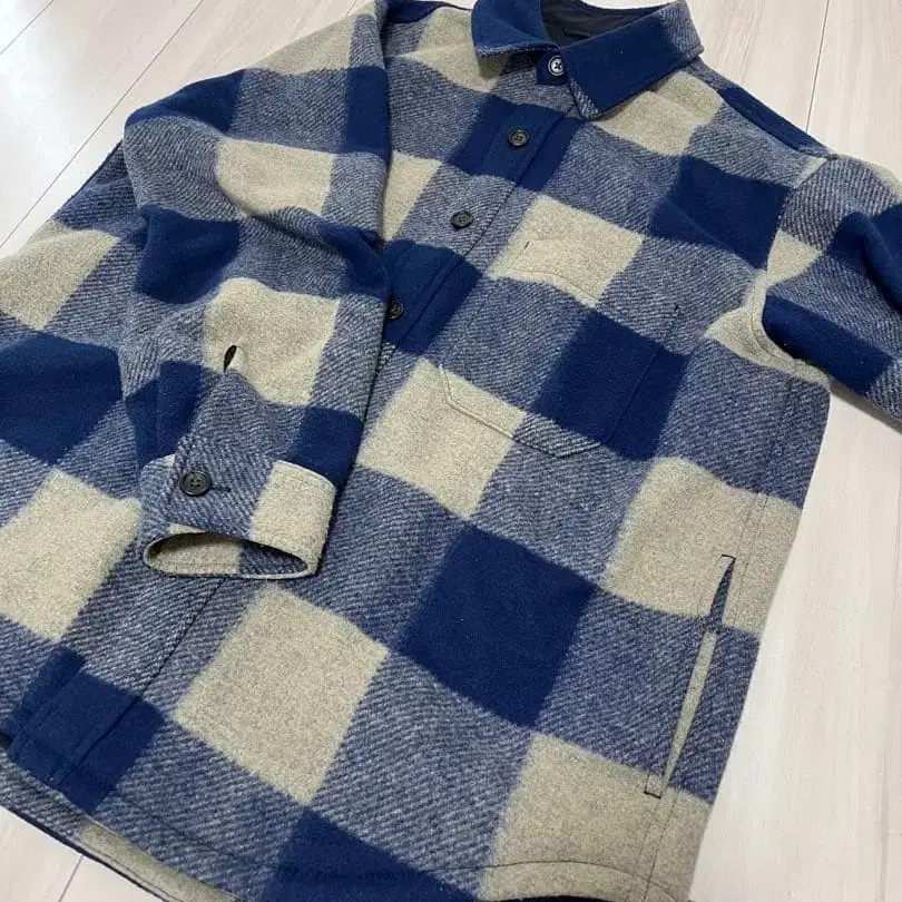 UNIQLO 유니클로 네이비 베이지 체크 무늬 셔츠 자켓