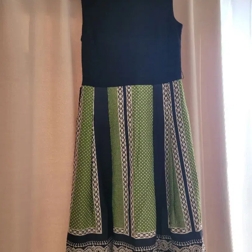 발표회 파티용 슬리브리스 원피스 블랙과 그린 스트라이프