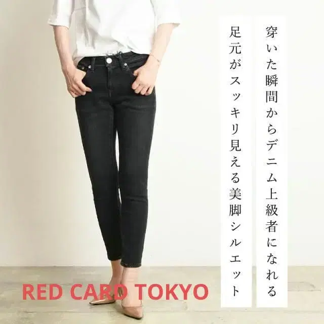 레드카드 30주년 기념일 앵클 슬림 테이퍼트 블랙진