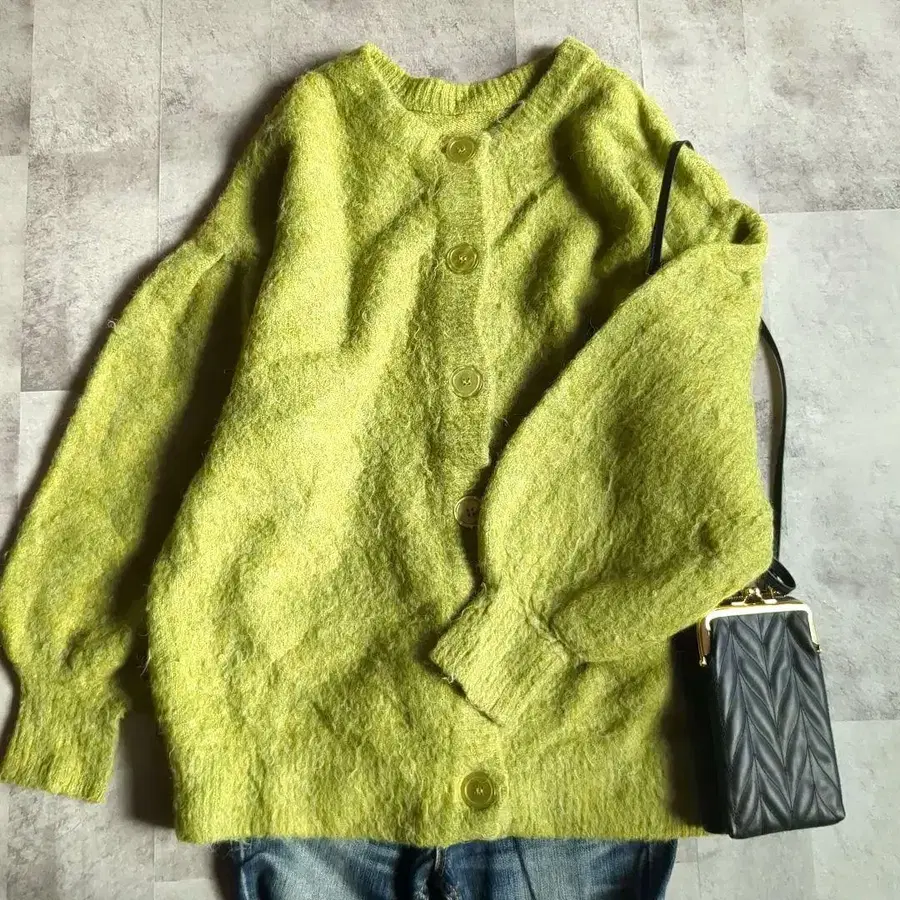 새상품급 GRL 모헤어 터치 볼륨 니트 가디건 옐로우 그린 겨울 빅