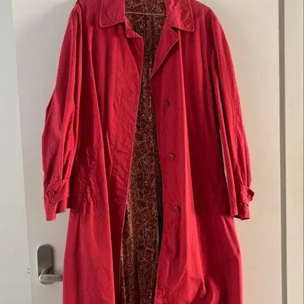 선명한 레드의 롱 코트, 페이즐리 무늬 안감 부착. - 브랜드: INGEBORG - 색상: 레드 - 디자인: 롱 코트 - 안감: 페이즐리 무늬 방문해 주셔서 감사합니다.