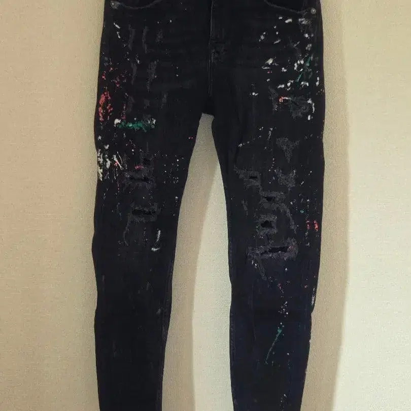 • ZARA 페인트 스플래쉬 스키니 데님 팬츠 데미지 크러쉬