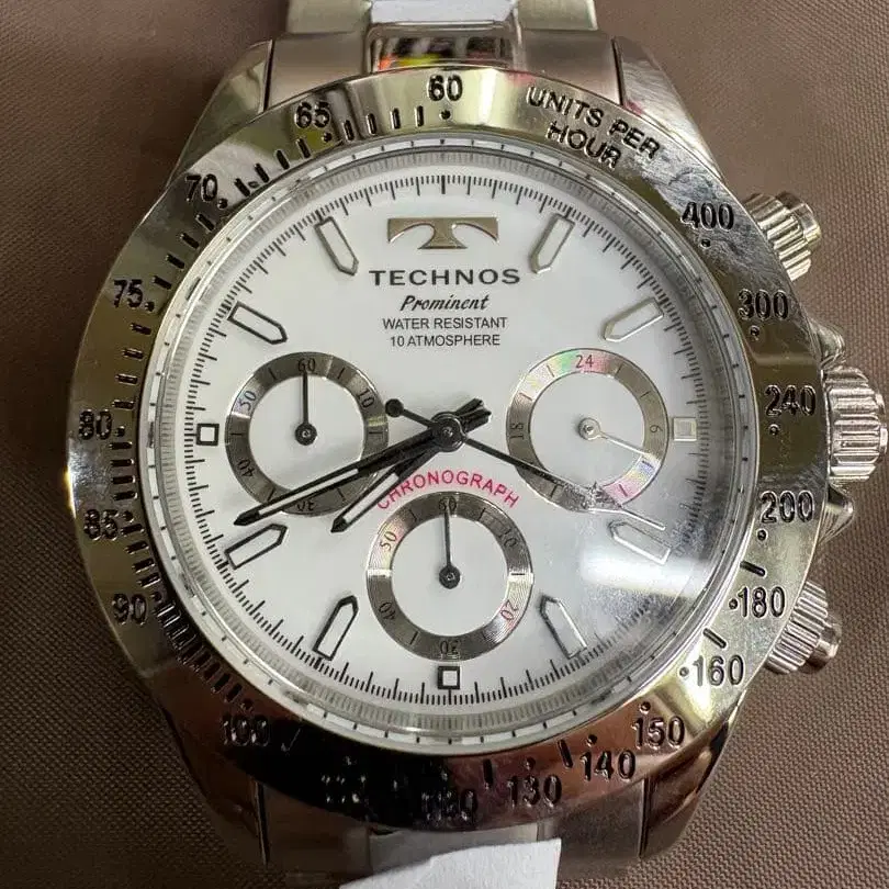 화이트 계열 다이얼 6바늘식 크로노그래프 쿼츠 방식 일상생활 방수 정가: ¥55000 세금 포함