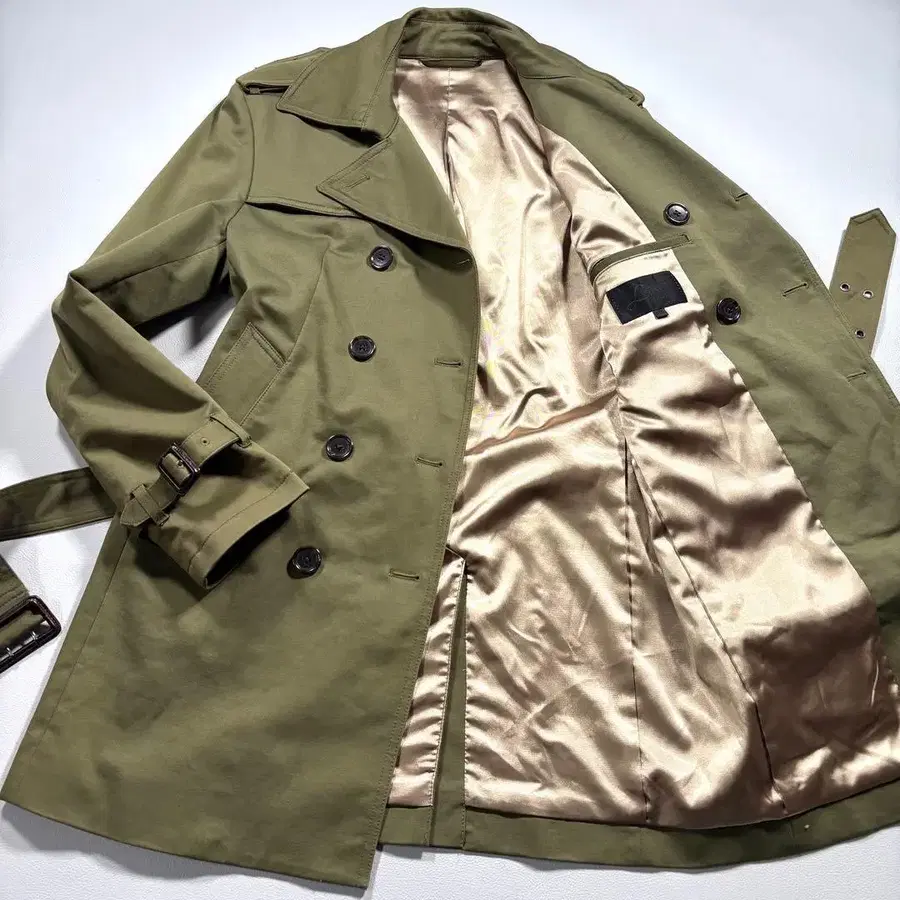 컨디션 최상 잭 로즈 더블 브레스트 트렌치코트 벨트 카키 안감