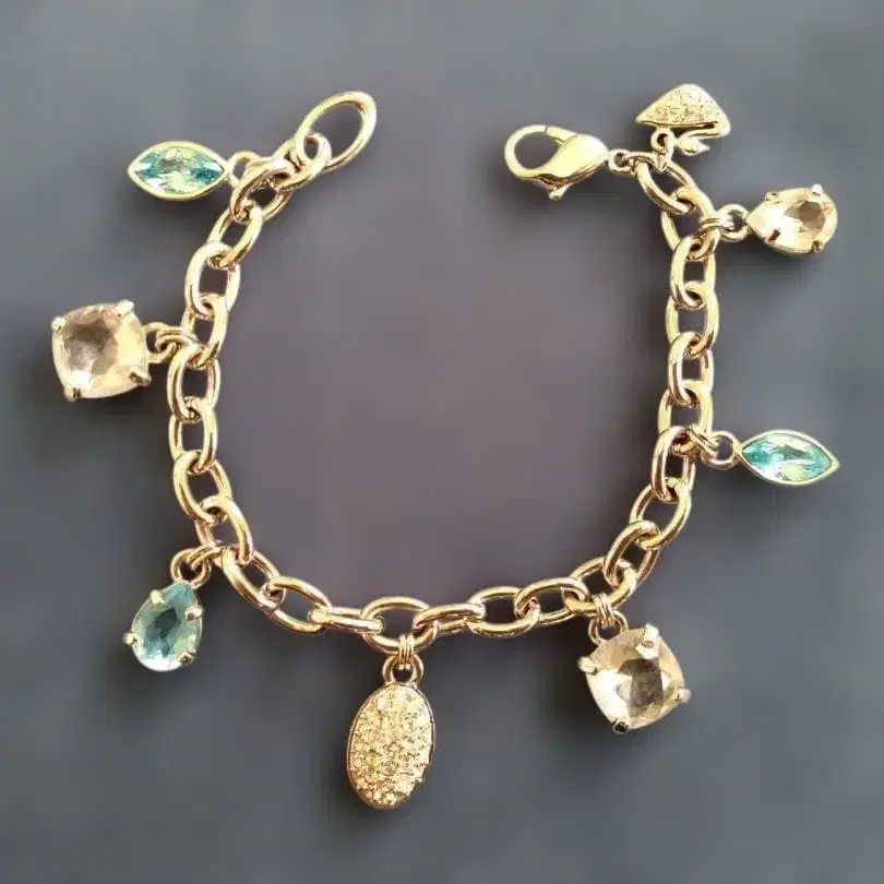 [미사용 새상품] 실버 체인 팔찌 보석풍 참 포함