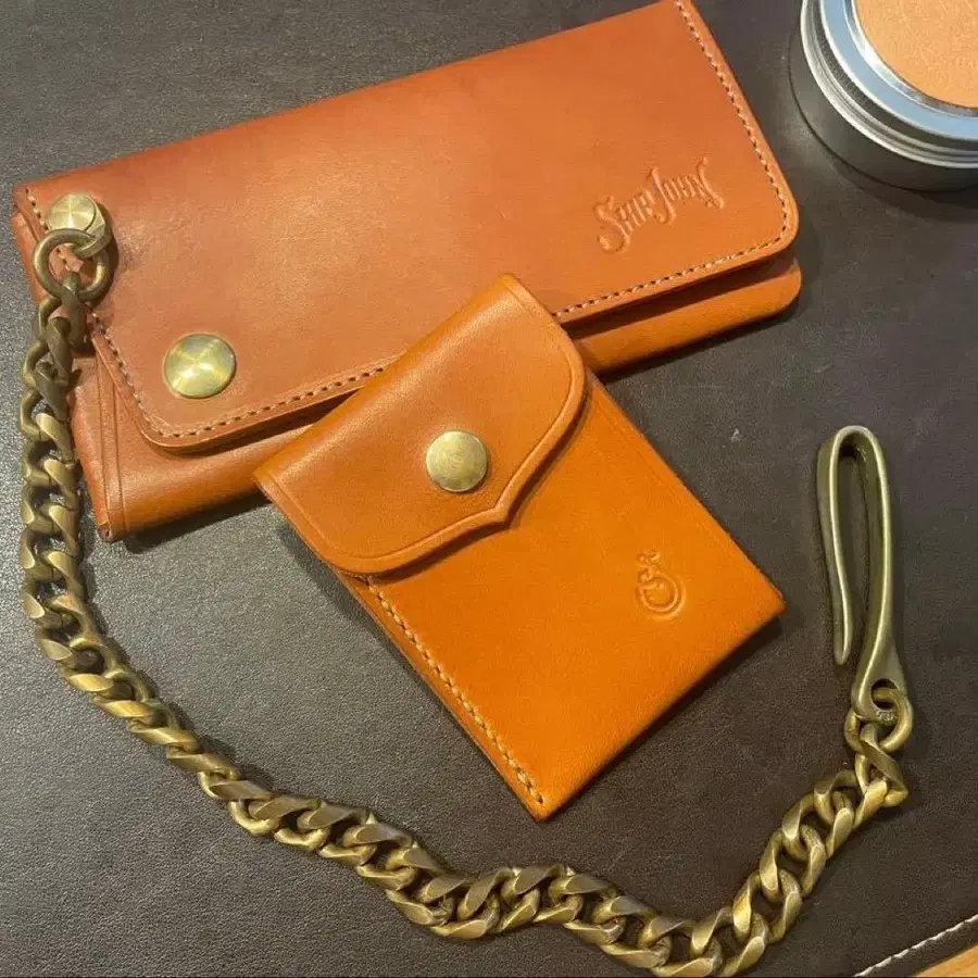○ SHIPJOHN의 가죽 굿즈 중 인기 있는 지갑 시리즈 [깁슨 월렛] 고품질 가죽제, SHIPJOHN 로고가 새겨진 지갑 체인 (약 380mm) 포함 장지갑. 세로 85mm x 가로 178mm (1만 엔 지폐가 딱 맞는 사이즈) 두께 10mm 미만 지폐 포켓 x 1, 프리 포켓 x 1, 카드 포켓 x 3 ○ 포리 카드 케이스 고품질 가죽제, SHIPJOHN 로고가 새겨진 카드 케이스. 세로 95mm x 가로 70mm - 브랜드: SHIPJOHN - 소재: 가죽 - 색상: 브라운 - 체인 소재: 금속 - 디자인: 로고 포함 - 부속품: 택 포함 ※ 사진의 TENJIN 오일은 포함되지 않습니다. 방문해 주셔서 감사합니다. 정품 취급점인 SHIP JOHN JAPAN에도 입고가 적으며, 카드 케이스는 완판템입니다. 둘 다 불필요한 부분을 최소화하여 사용할수록 얇아집니다. 스냅 버튼을 상단 한 곳에만 사용하여 바지에 데미지를 줄이는 고안이 되어 있습니다. 원래는 바이커가 주머니에 넣어도 잊어버릴 정도로 익숙해지도록 만들어졌습니다. 시장에 나오지 않는 뛰어난 아이템입니다. 이 품질을 이해하시는 분, 또는 구매를 놓치셨던 분, 지금은 세트로 구하는 것이 매우 어려운 아이템입니다. 잘 부탁드립니다.