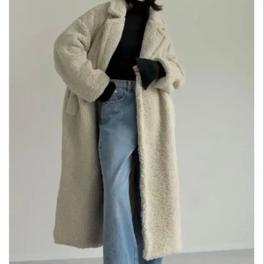 크림색 롱 코트 울 혼방