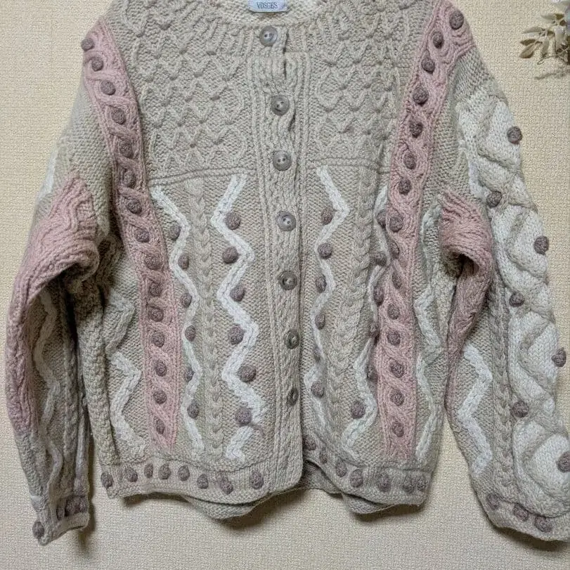 베이지 핑크 케이블 니트 가디건 울 100% 걸리시 스타일