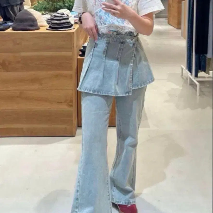 kastane 플리츠 스커트 포함 플레어 데님 바지 단품