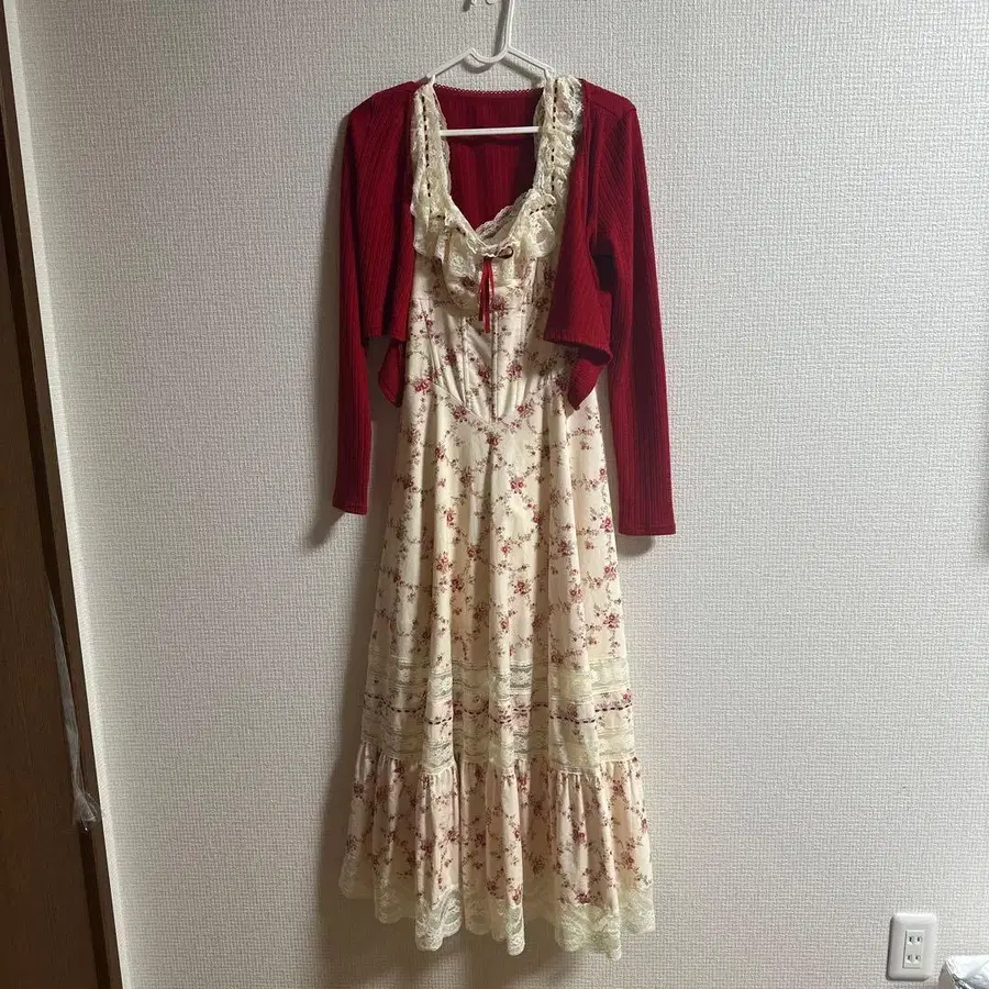 밖에서 착용한 것은 3회입니다. 그 외에는 입지 않았습니다. 클리닝도 맡겼었습니다. 지금 M 사이즈는 품절이라고 합니다. 라즈베리 코르셋 드레스와 스트로베리 퍼 니트 가디건 세트입니다. 이 계절에는 긴팔의 귀여운 셔츠를 함께 착용할 수 있습니다 ♡