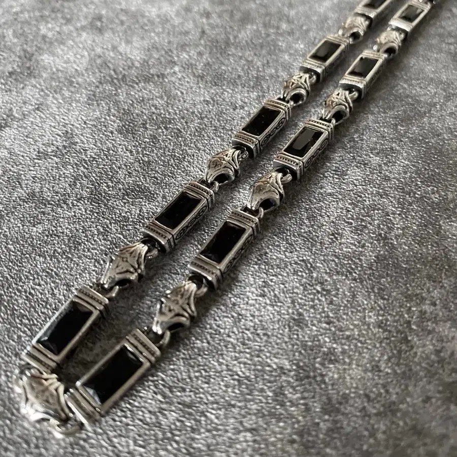 오닉스 x 실버 클래스프 목걸이 흑석 꼬임 컷 고급