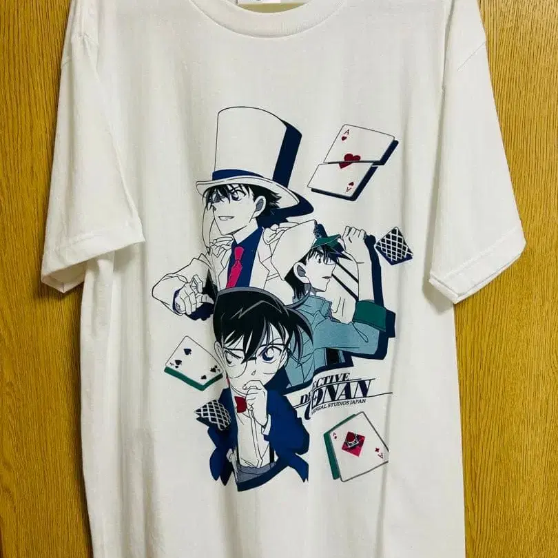 유니버셜 명탐정 코난 콜라보 T셔츠입니다. 새상품으로 구매 후 장식만 해두었습니다. 미착용입니다. M 사이즈입니다. #에도가와 코난 #명탐정 코난 #괴도 키드