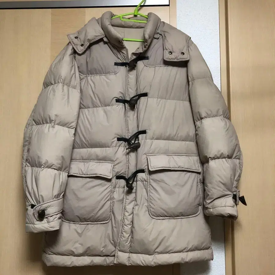 DoCLASSE 베이지 토글 버튼 후드 부착 다운 코트