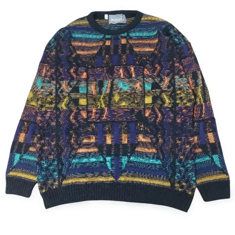 자동 번역되었어요. 원문보기다색의 기하학 패턴이 특징인 니트 스웨터.