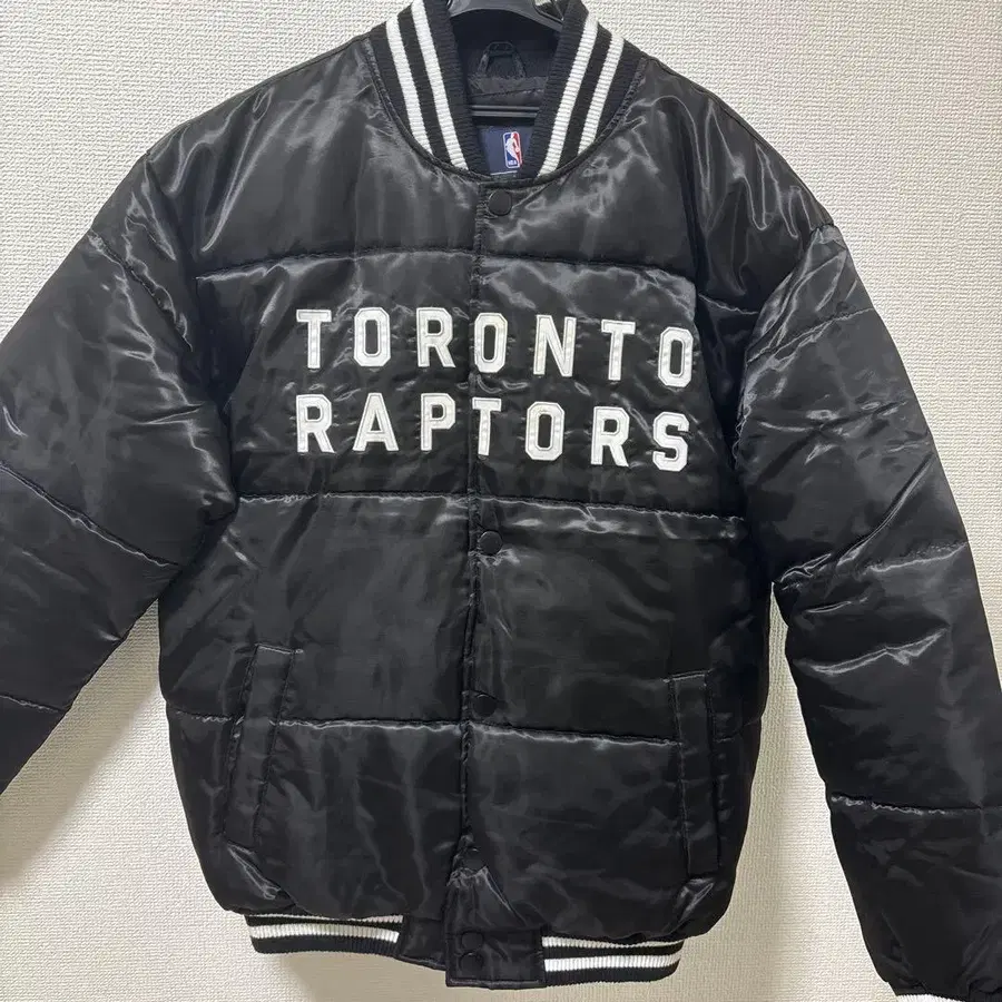 토론토 랩터스 패디드 자켓, 블랙, 스트라이프 리브 칼라. 토론토 랩터스 경기를 보러 갔을 때 경기장에서 구매했습니다. 일본 엔화로 약 30,000엔이었습니다. - 브랜드: GIII Sports by Carl Banks - 팀명: Toronto Raptors - 색상: 블랙 - 사이즈: S/M - 디자인: 패디드 자켓 - 특징: 스트라이프 리브 칼라 방문해 주셔서 감사합니다.