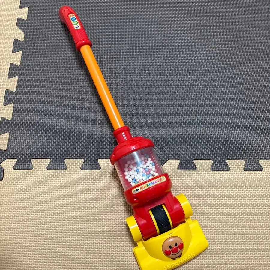 호빵맨 디자인의 즐거운 장난감 청소기. - 브랜드: 호빵맨 - 색상: 빨간색/옐로우 컬러 - 타입: 장난감 청소기 - 특징: 공이 회전하는 기능 - 사이즈: 약 60cm 길이 방문해 주셔서 감사합니다. 조립식이지만 분리되지 않아 사진과 같은 상태로 발송됩니다.