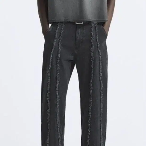 프린지 가공이 특징인 Zara의 다크 그레이 와이드 데님 팬츠. - 색상: 다크 그레이 - 스타일: 와이드 팬츠 - 디자인: 프린지 가공 - 소재: 데님 방문해 주셔서 감사합니다.