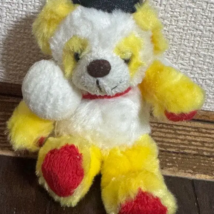 빨간색과 검은색 모자를 쓴 옐로우 컬러와 화이트 컬러 곰 마스코트 - 색상: 옐로우 컬러와 화이트 컬러 - 모자 색상: 빨간색과 검은색 방문해 주셔서 감사합니다.