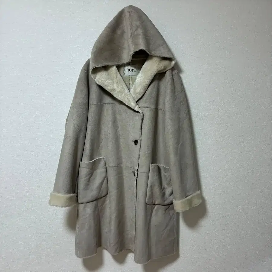 ROPE 후드 부착 무스탕 코트 베이지 여성용