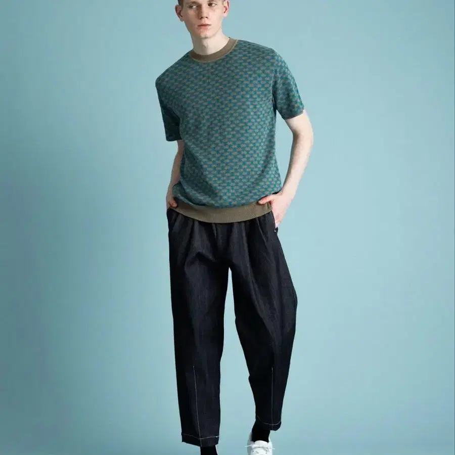 UNITED TOKYO 코몬 패턴 숏 슬리브 니트