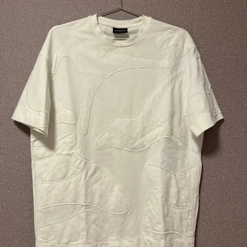 입체적인 패턴이 특징인 화이트 T셔츠. 4만 엔 정도에 구매했습니다. - 브랜드: EMPORIO ARMANI - 색상: 화이트 - 디자인: 입체적인 패턴 - 스타일: 캐주얼 어깨 너비/가슴 너비/소매 길이/기장 어깨 너비 - 52cm 가슴 너비 - 55cm 소매 길이 - 19cm 기장 - 68cm 색상 - 화이트 계열 사진에 첨부된 것과 같은 얼룩이 한 곳 있습니다.