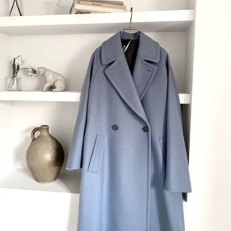 hevo 블루 더블 브레스트 코트 벨트 포함