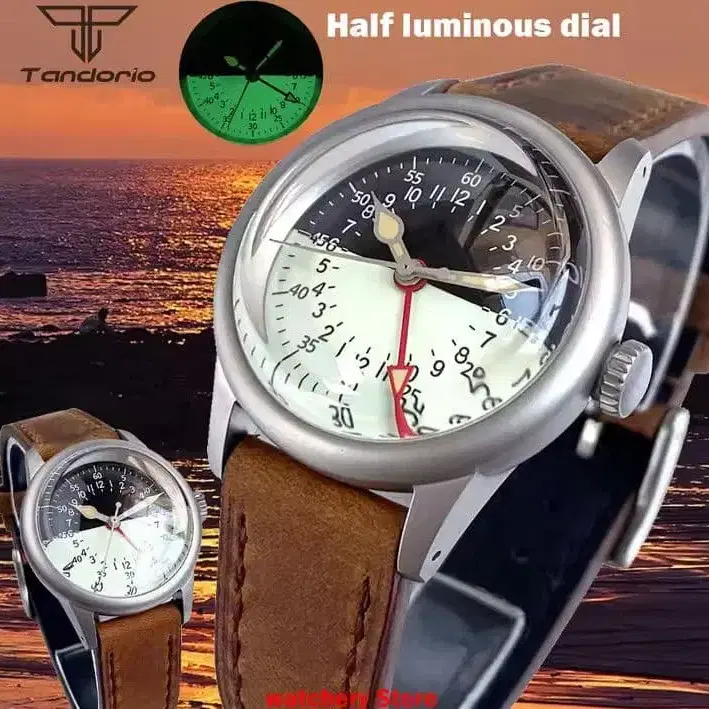 Tandorio 자동 와인딩 손목시계 하프 루미너스 다이얼