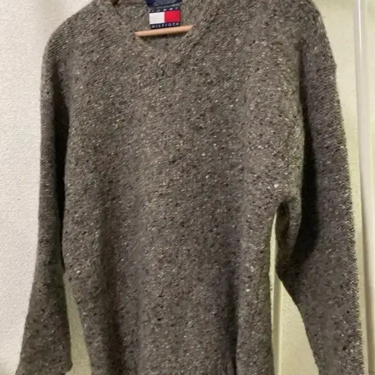 • 타미힐피거 라무 울 니트 그레이 자수 로고 M 사이즈 V넥