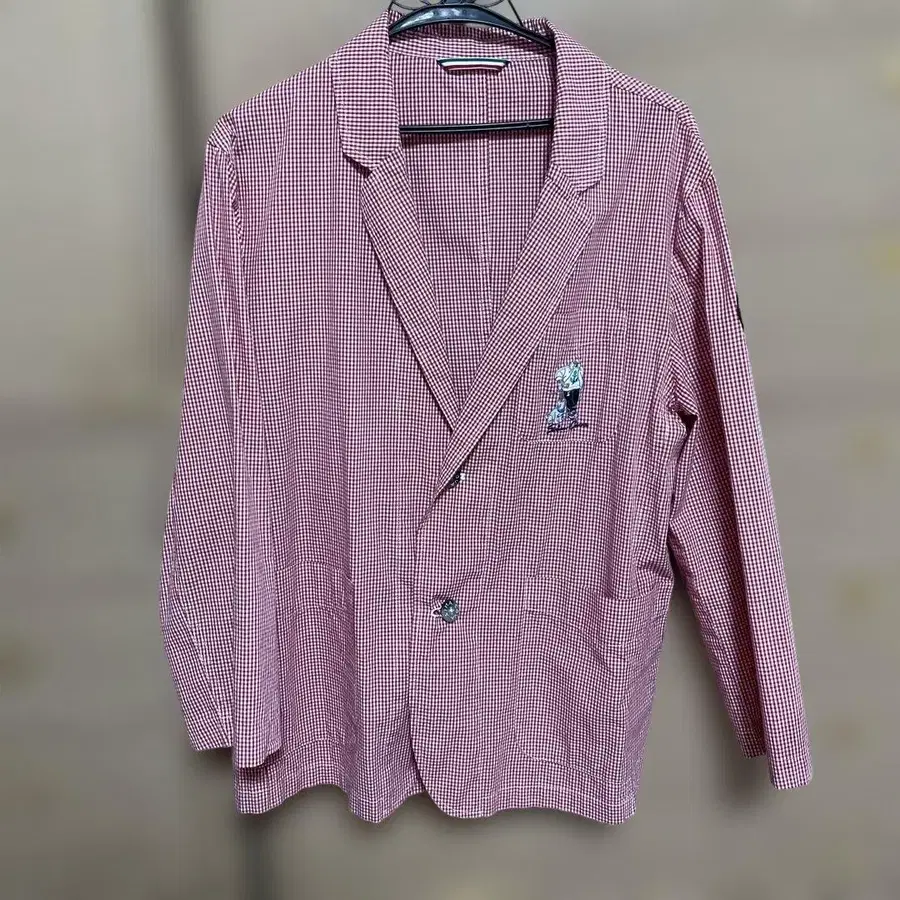 시나코바 얇은 소재 빨간색 체크 자켓