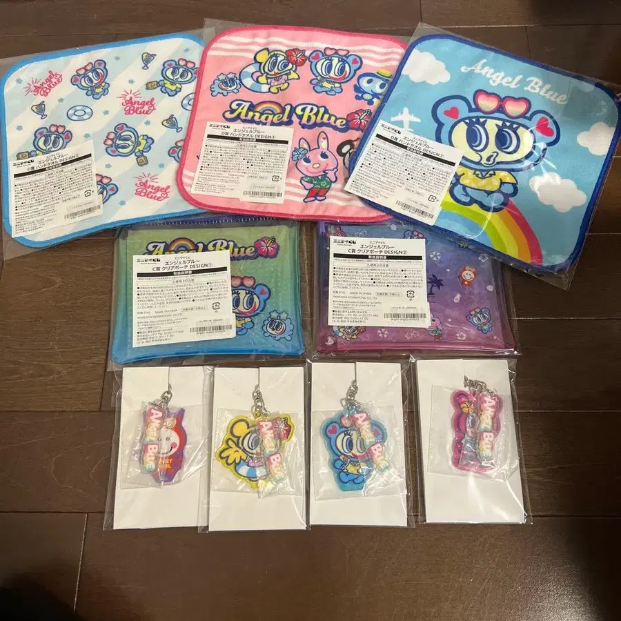 에니마이 복권 엔젤 블루 'enjoy summer travel' C상 클리어 파우치 D상 핸드 타월 E상 아크릴 키링 9종 세트 모두 미사용 새상품 간편 포장으로 발송합니다