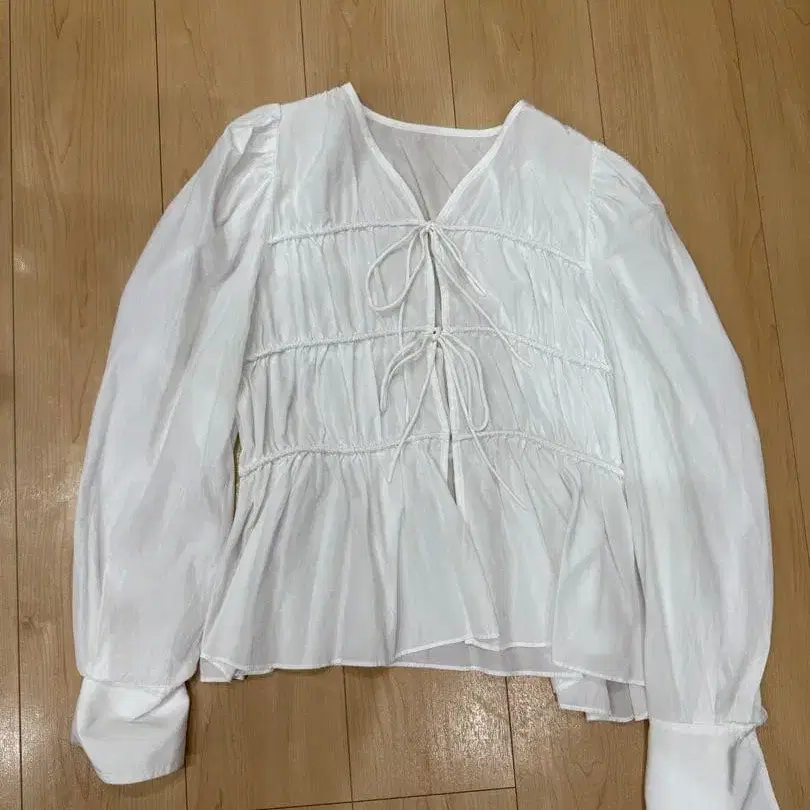 LIZLISA 리즈리사 프릴 하트 리본 슬리브 상의 화이트