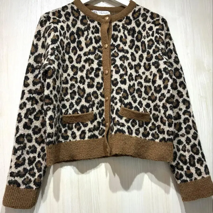 ZARA 레오파드 샤기 가디건 레오파드 무늬 브라운 비쥬 버튼