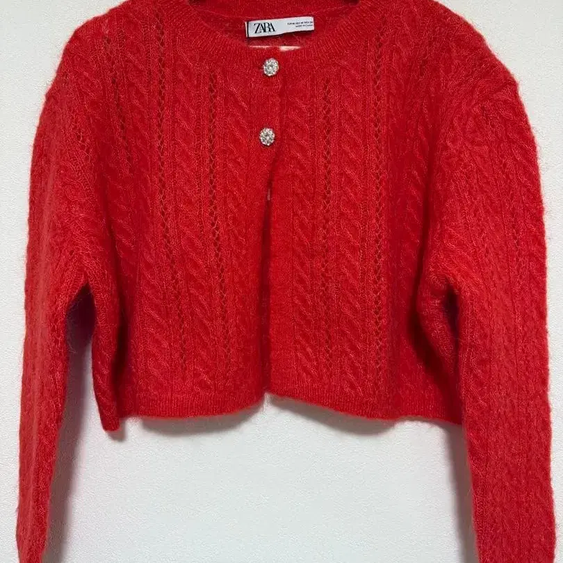 • 크리스마스 컬러의 레드 케이블 니트 가디건